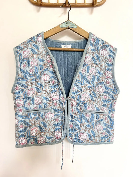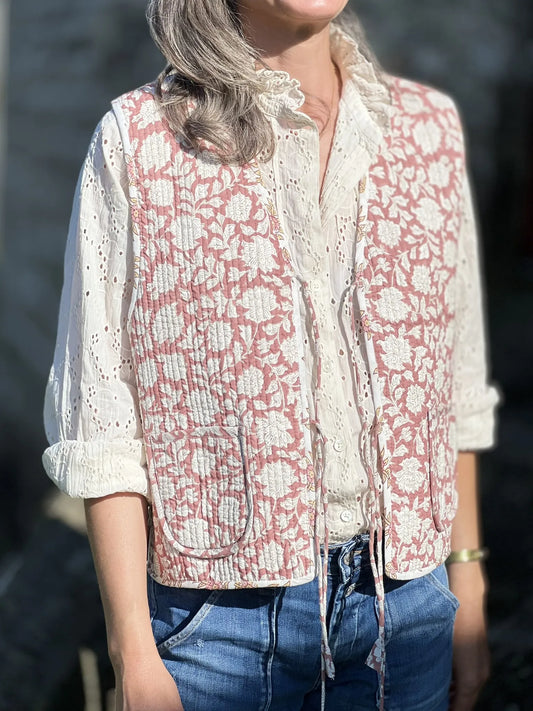 Gilet matelassé réversible imprimé block-print - Bois de rose