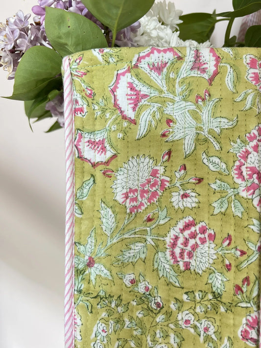 Cabas matelassé imprimé block print - Anis & rose