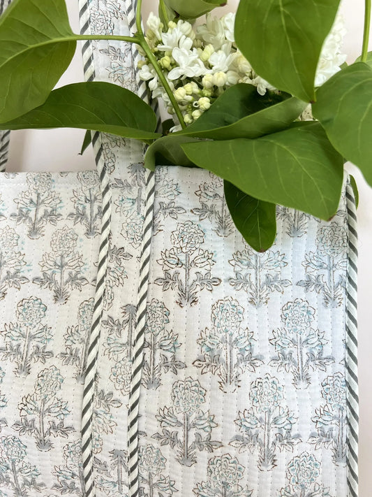 Cabas matelassé imprimé block print - Chaux