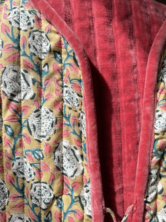 Gilet matelassé velours et imprimé block-print - Groseille