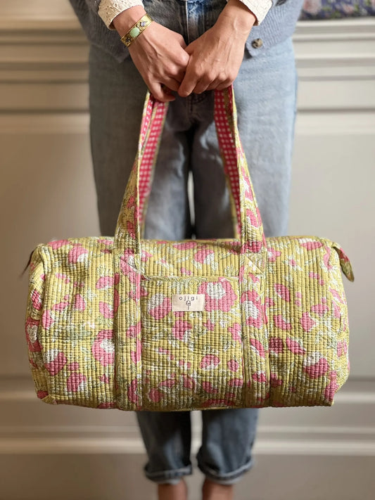 Sac week-end ESCAMPETTE matelassé et imprimé block-print - Anis