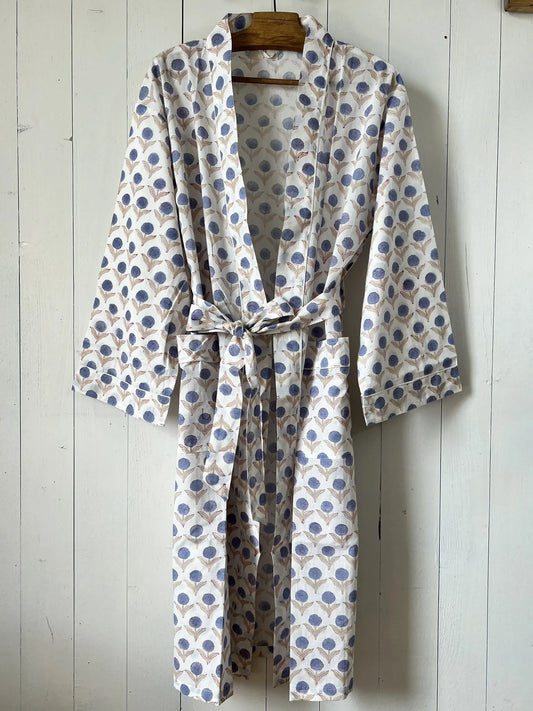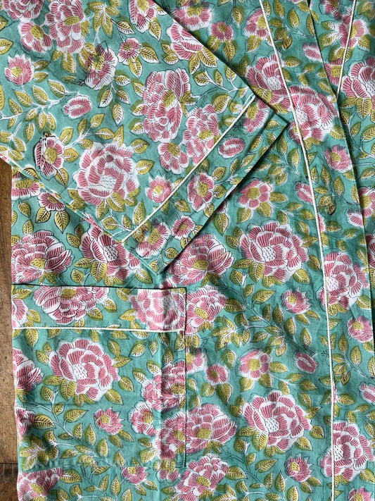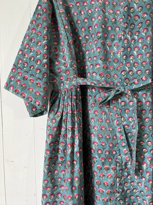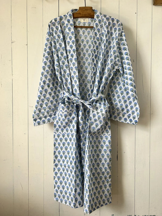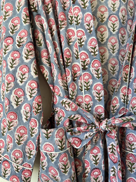 Kimono GOA - Œillet bleu ciel, rose et vert