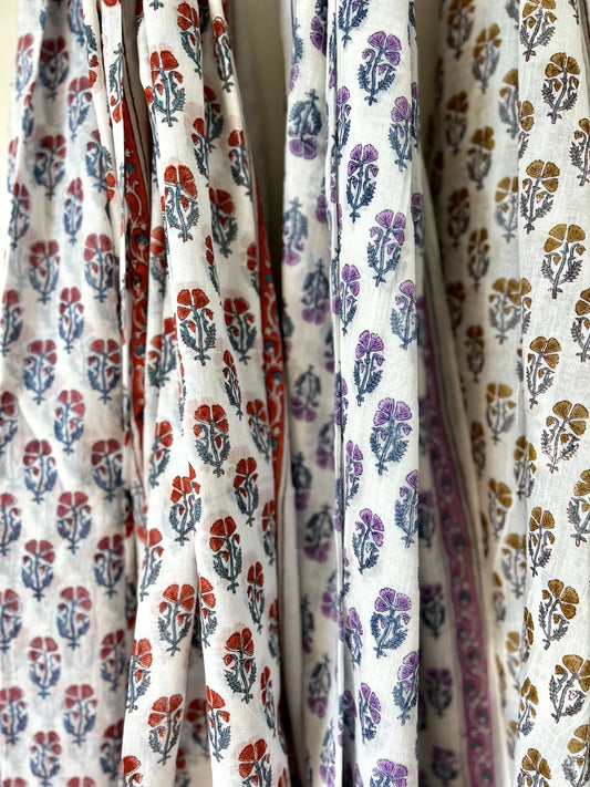 Robe longue JOSEPHINE - Pâquerette bleu, rouge et vert