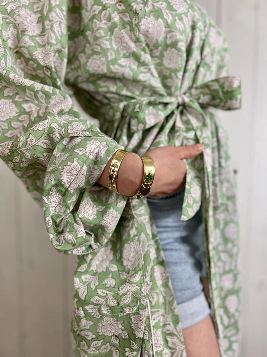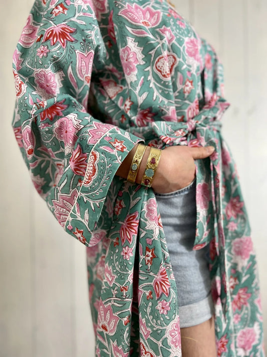 Kimono GOA - Pivoine vert d'eau, vert acidulé et rose