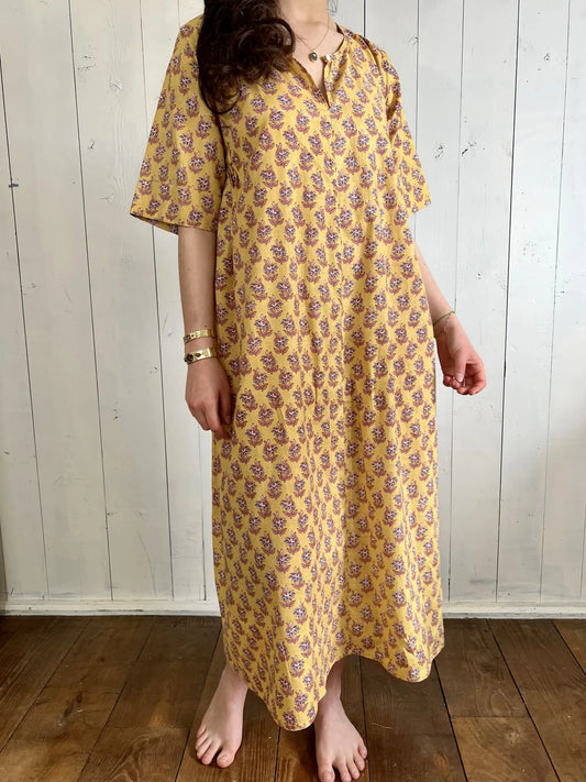 Robe longue JOSEPHINE - Mimosa jaune, bleu et vieux rose